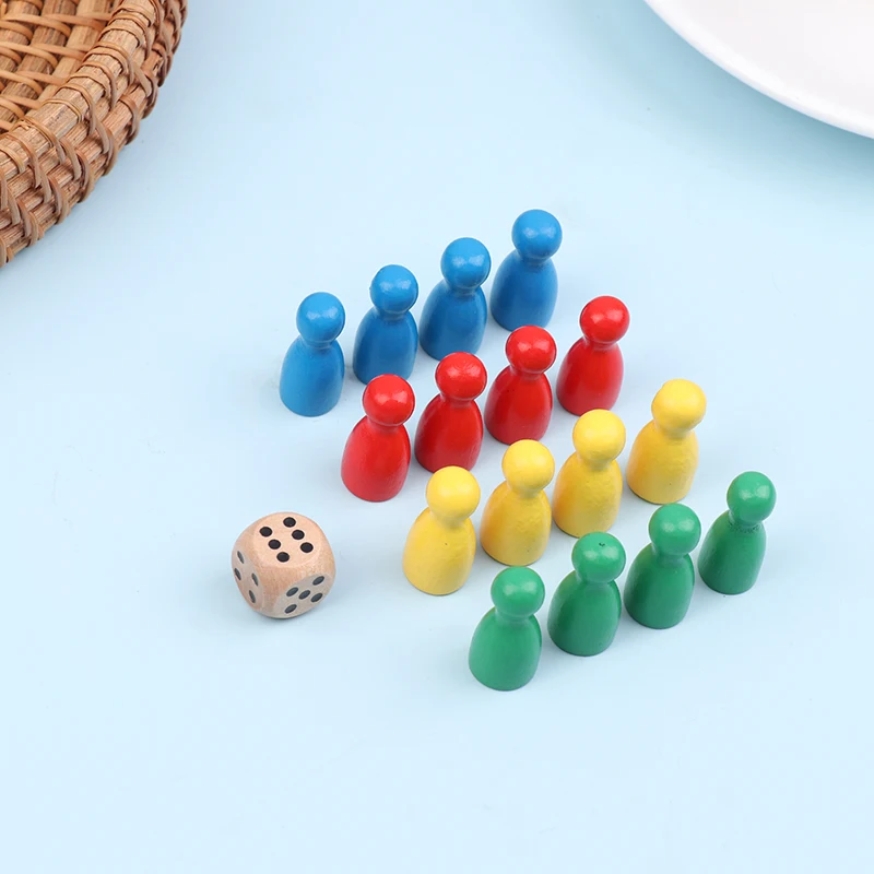 16 Chess Pieces + 1 Dice Flying Wooden Chess Pieces For Primary School Students Three-Dimensional Checkers For Games Accessories