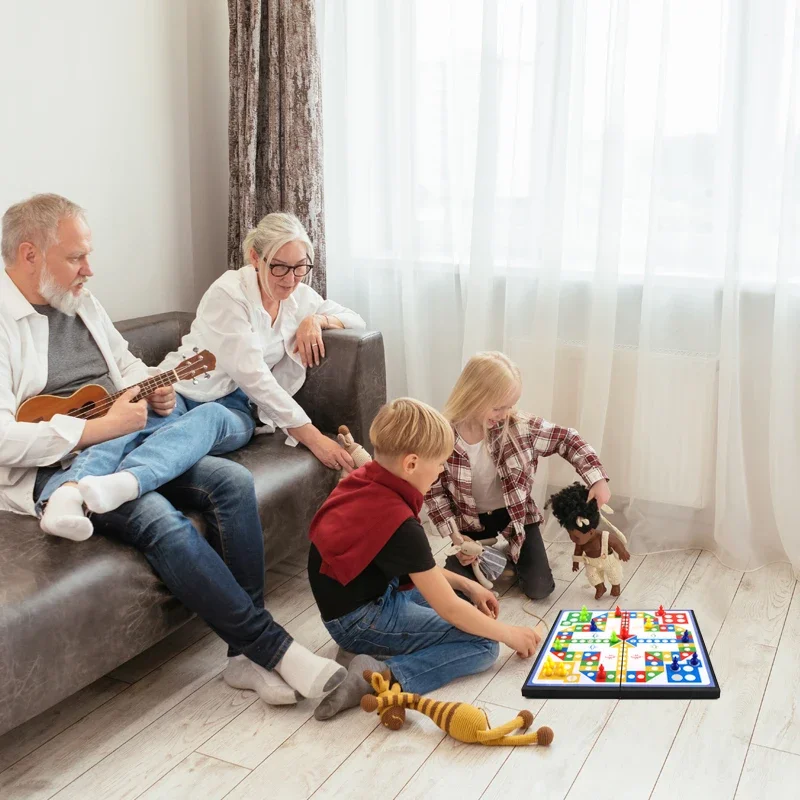 1Set Magnetic Foldable Flying Chess Crawling Mat Ludo Portable Board Game Camping Travel Game Set Aeroplane Chess